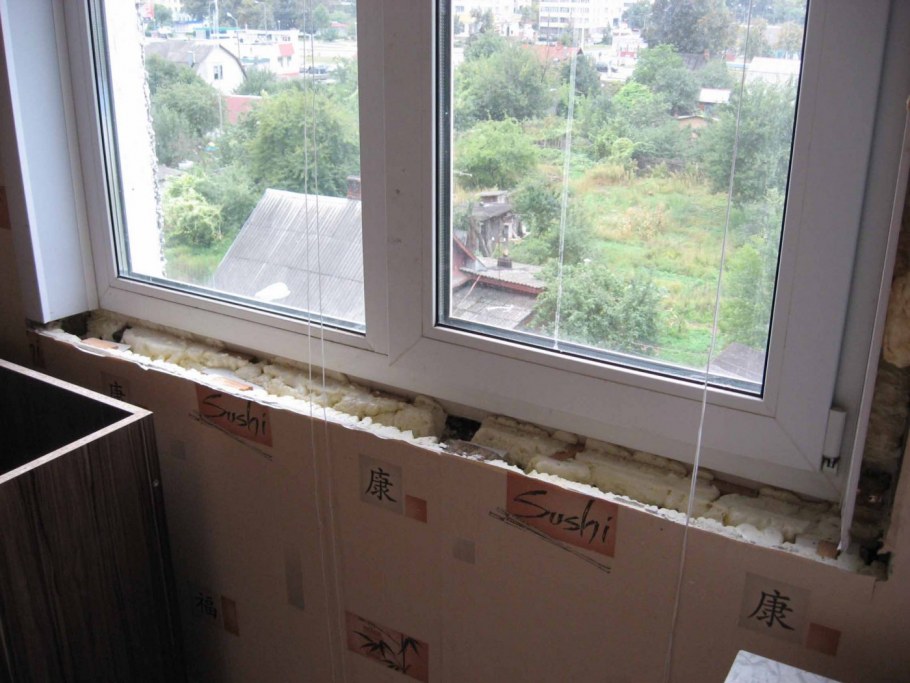 Окно без подоконника на кухне