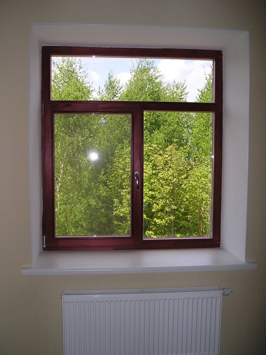 Окно с деревянным подоконником
