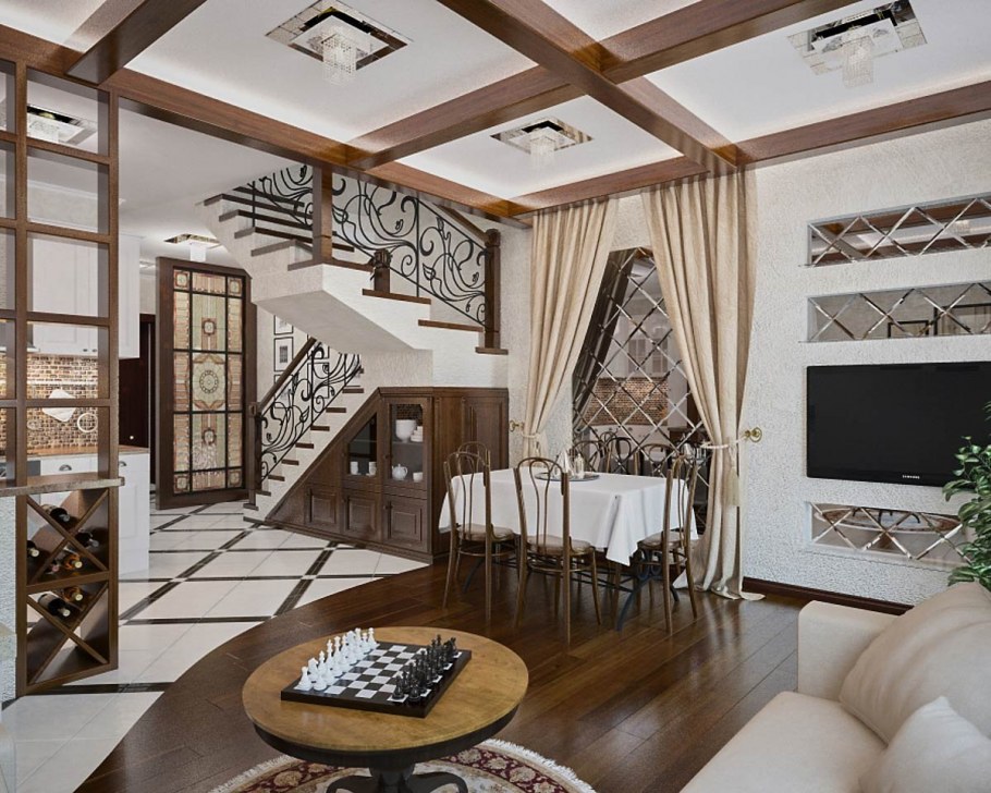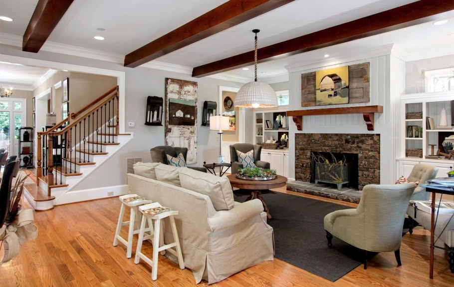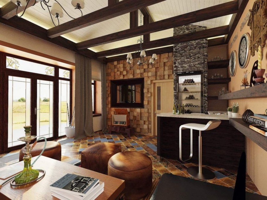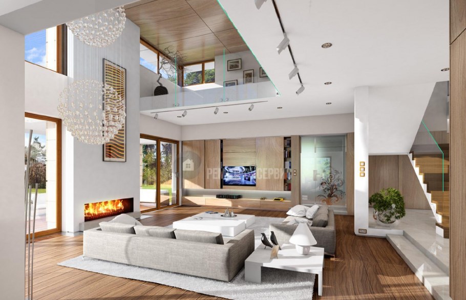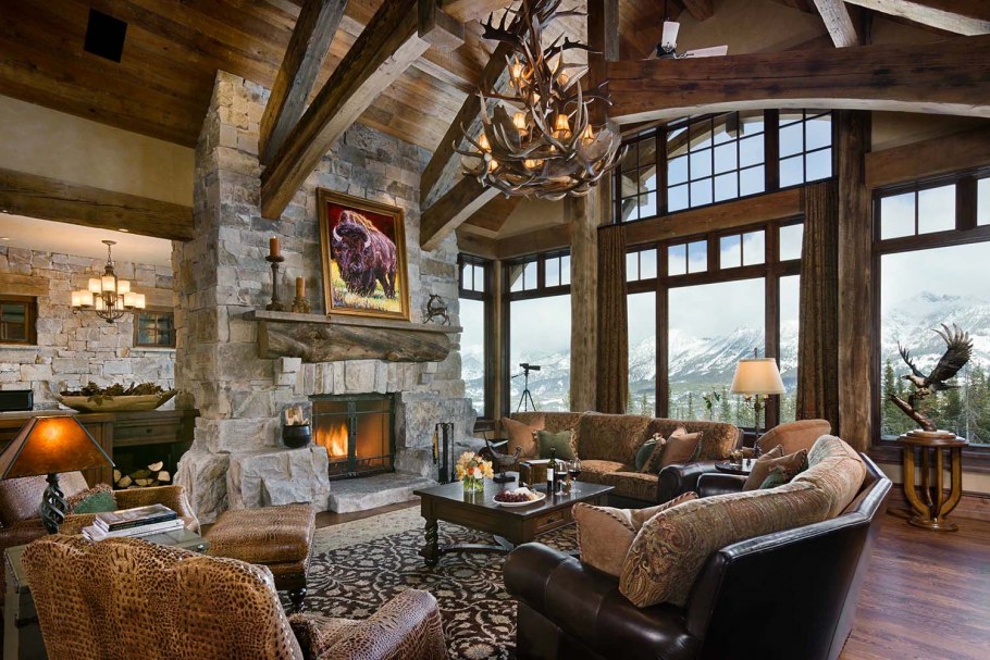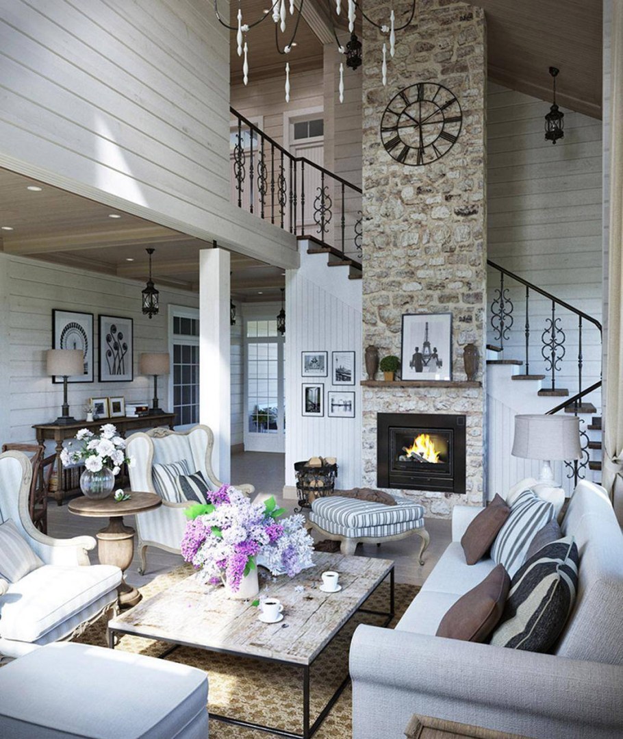 Интерьер загородных домов и коттеджей внутри разных стилей (82 фото)