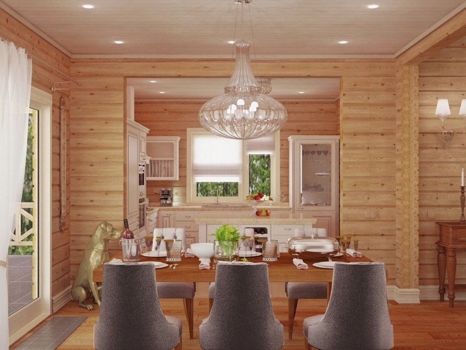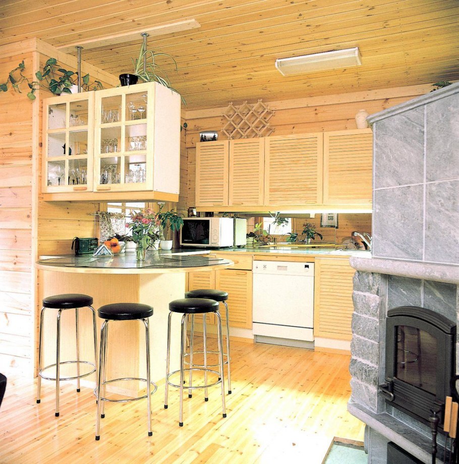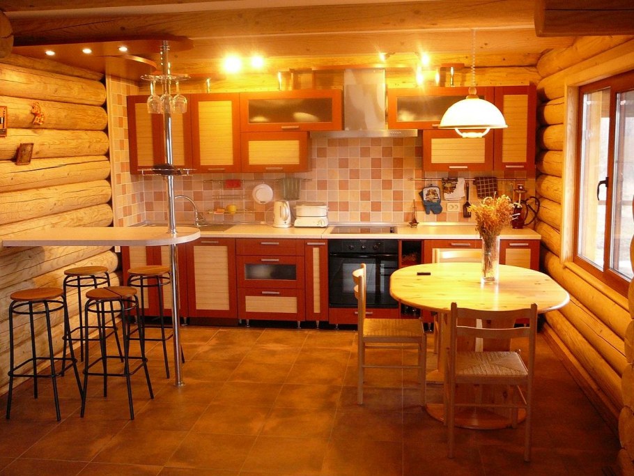 Интерьер кухни деревянного дома
