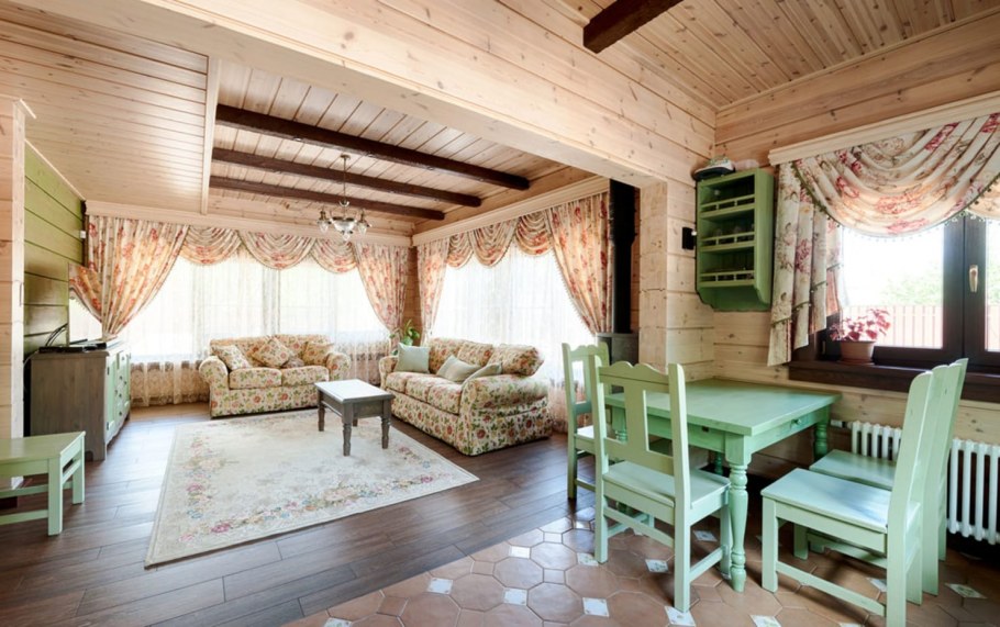 Кухни в стиле Прованс в срубовом доме
