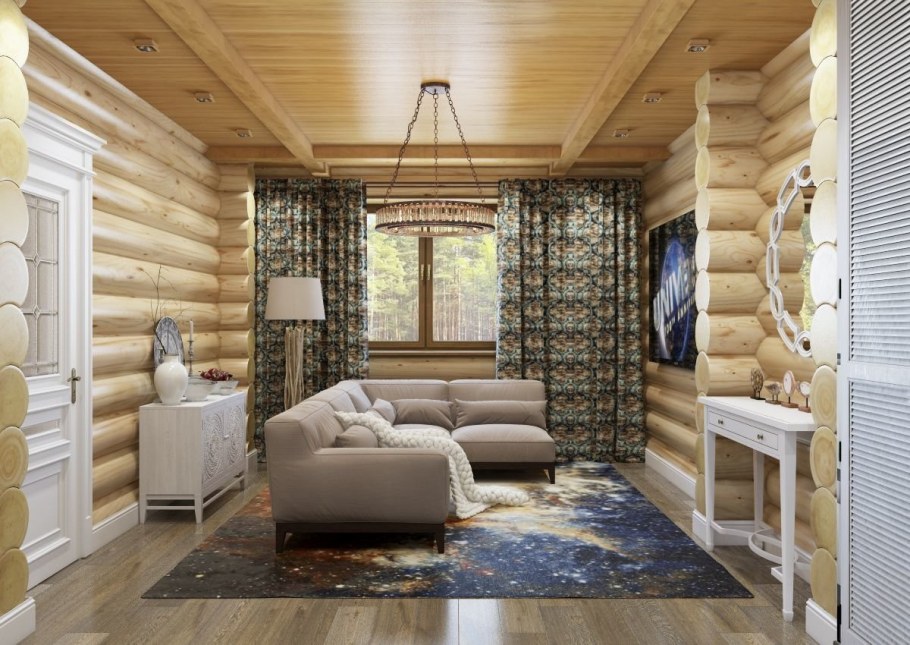 Гостиная в доме из сруба