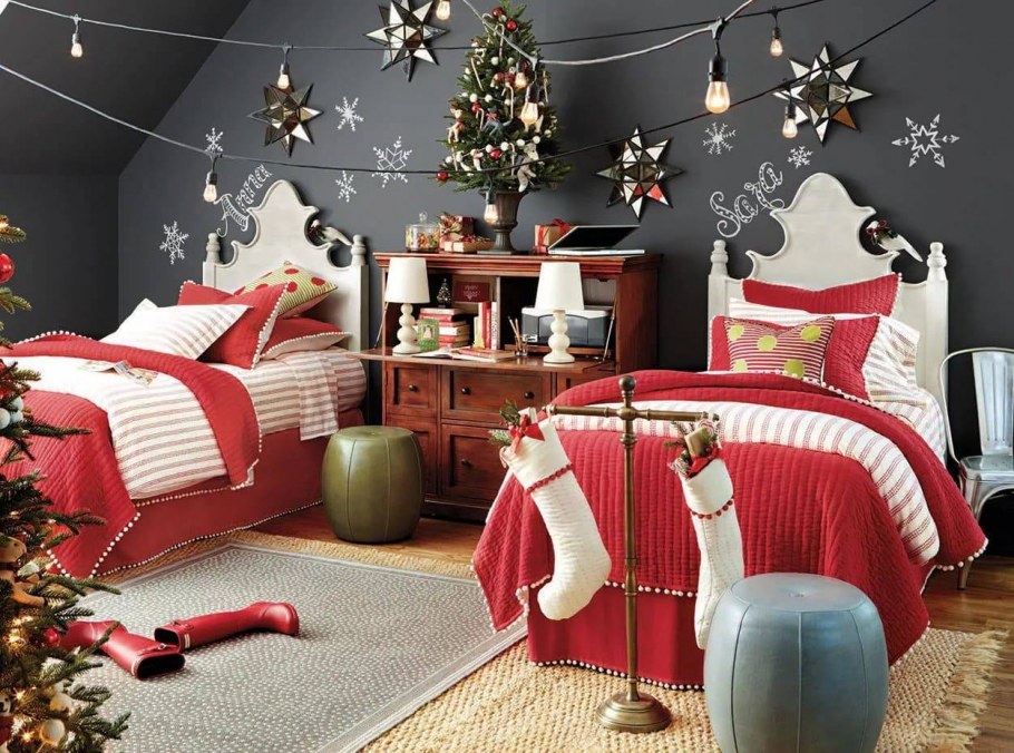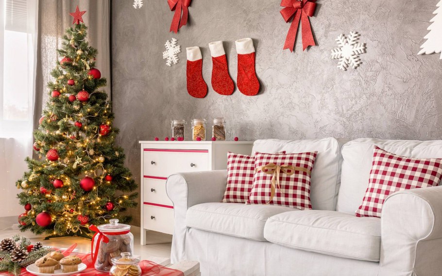 Текстиль — ещё один верный союзник в создании праздничного настроения. Пледы с узорами в клетку или снежинками, декоративные подушки в оттенках бордо, изумрудного или золотистого — всё это легко вписывается в существующий дизайн и добавляет ощущение праздника без излишеств. Особенно удачно смотрится новогодний декор комнаты, где текстиль сочетается с натуральными материалами: деревом, керамикой, льном. Такой подход сохраняет баланс между торжественностью и повседневным комфортом.