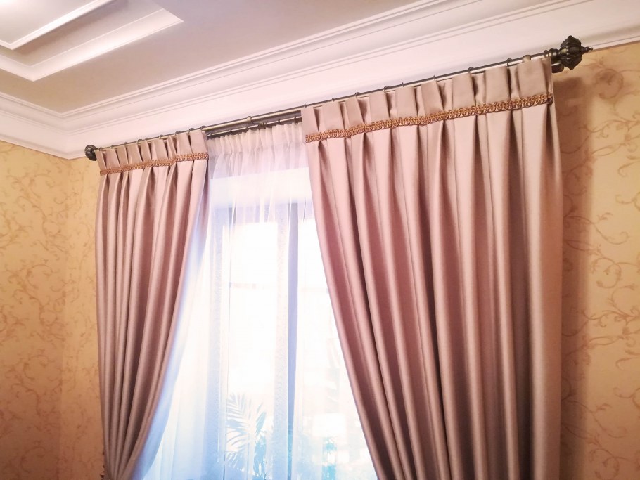Штора Затемняющая двусторонняя с бордюром со складками, voda
