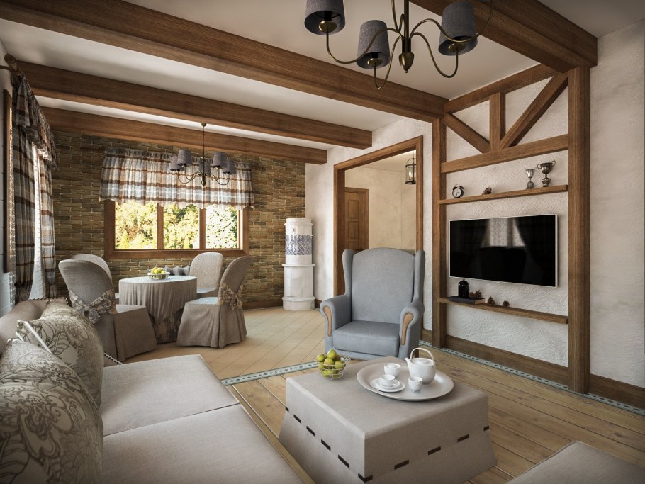 Отделка интерьера в стиле фахверк