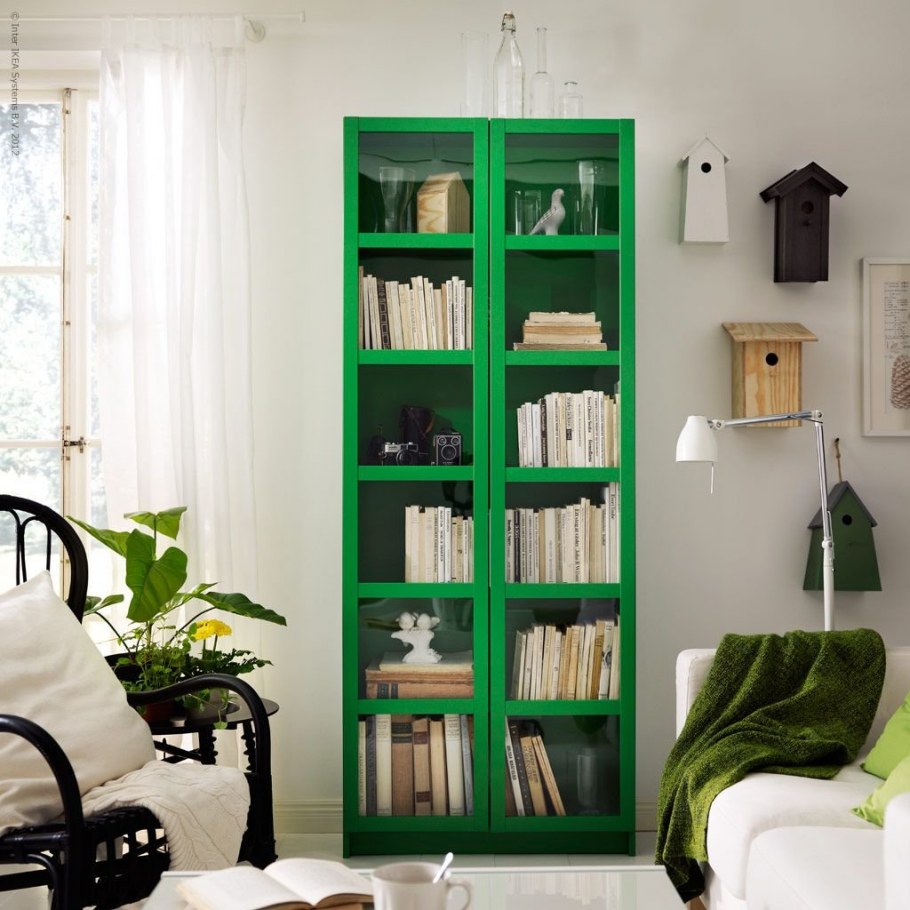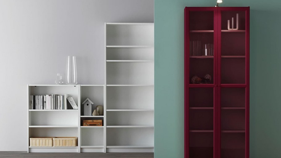 Билли шкаф книжный со стеклянными дверьми, темно-красный, 80x30x202 см
