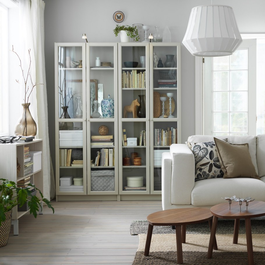 Билли / ОКСБЕРГ стеллаж, белый, стекло120x30x237 см