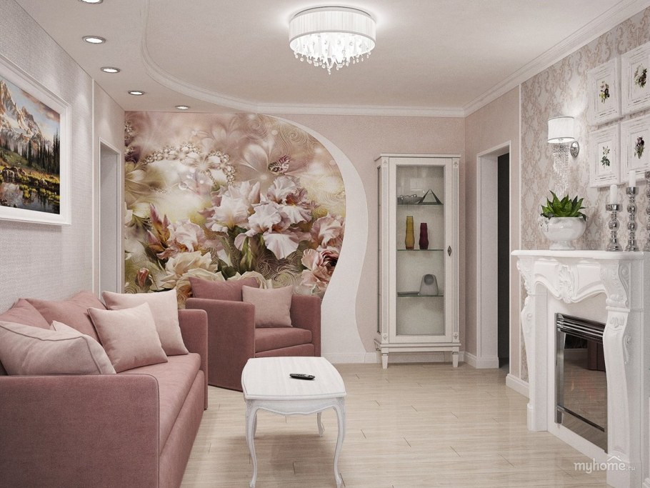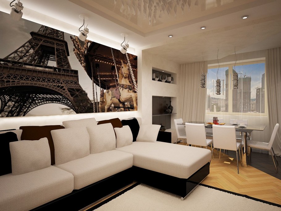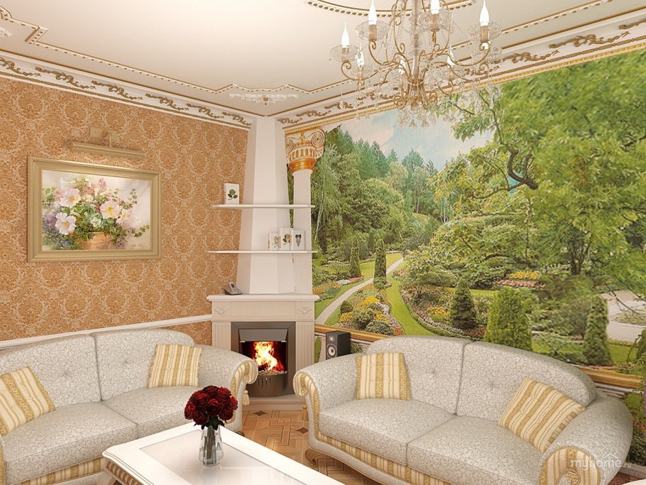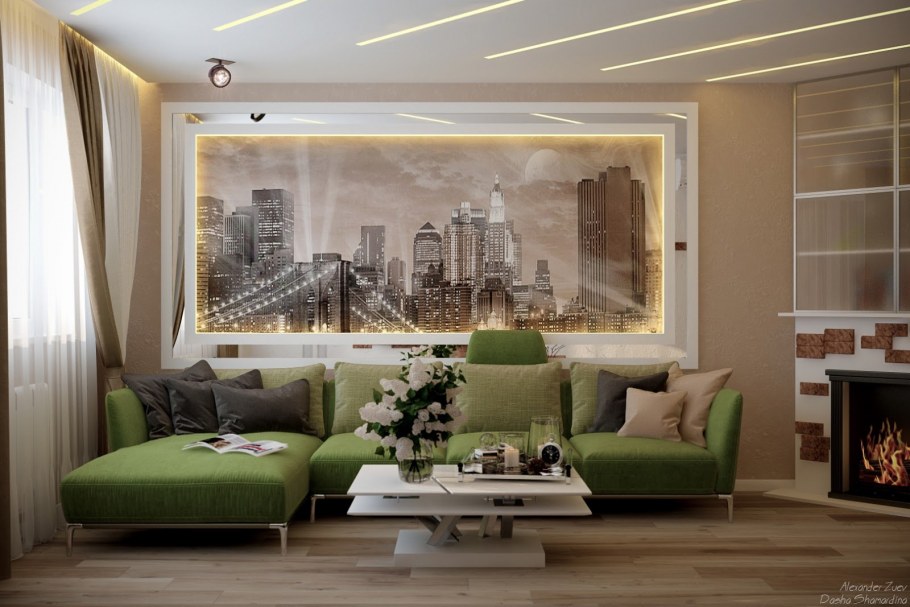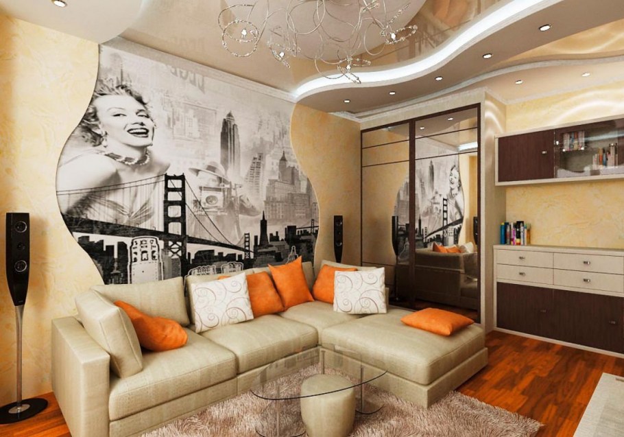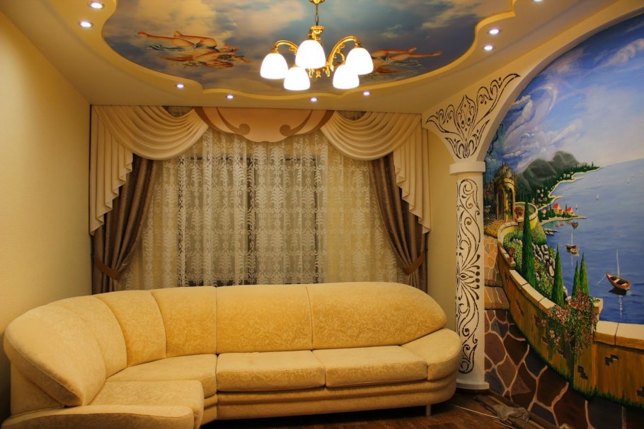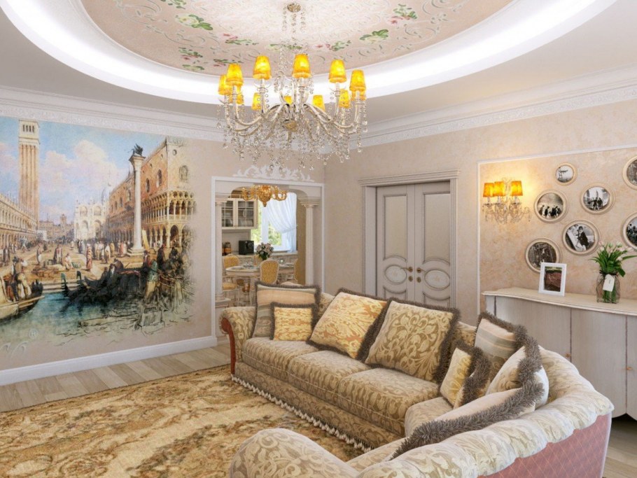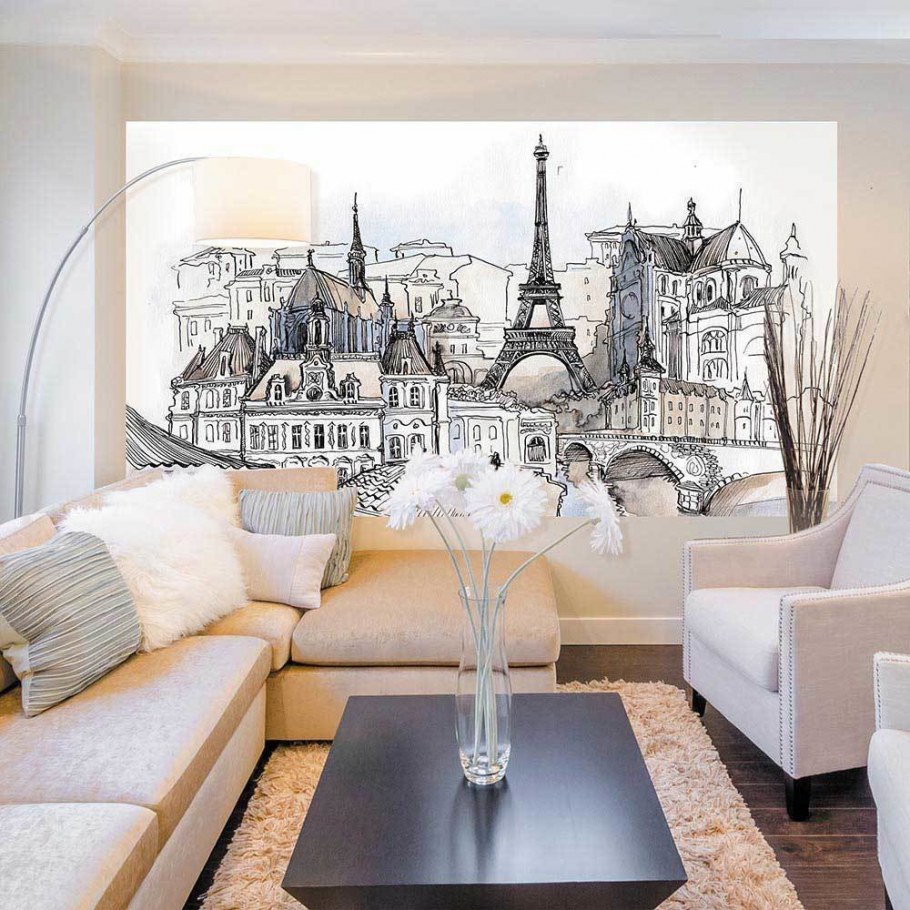 Фрески на стену в интерьере гостиной над диваном (80 фото)
