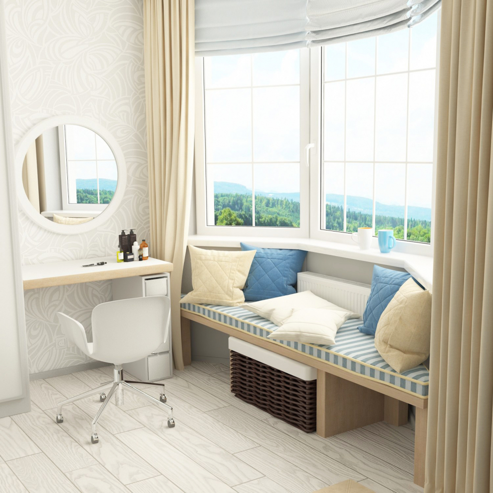 Интерьер однокомнатной квартиры 40 кв.м с эркером