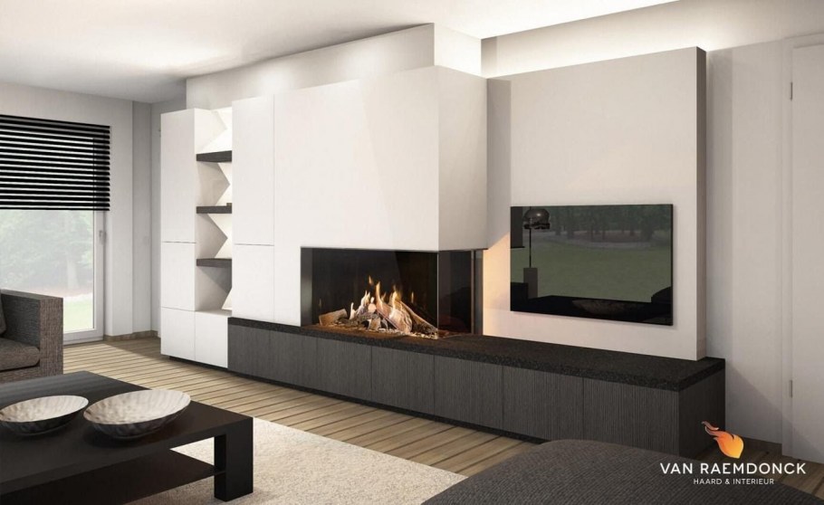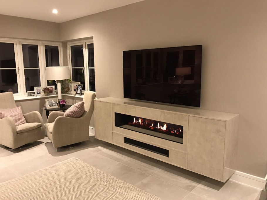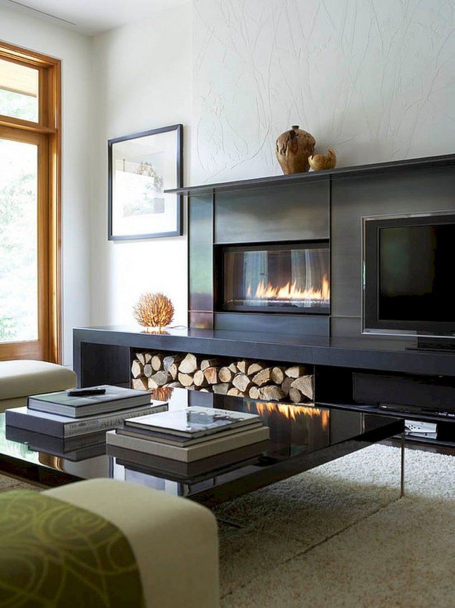 Тумба со встроенным камином в интерьере (80 фото)