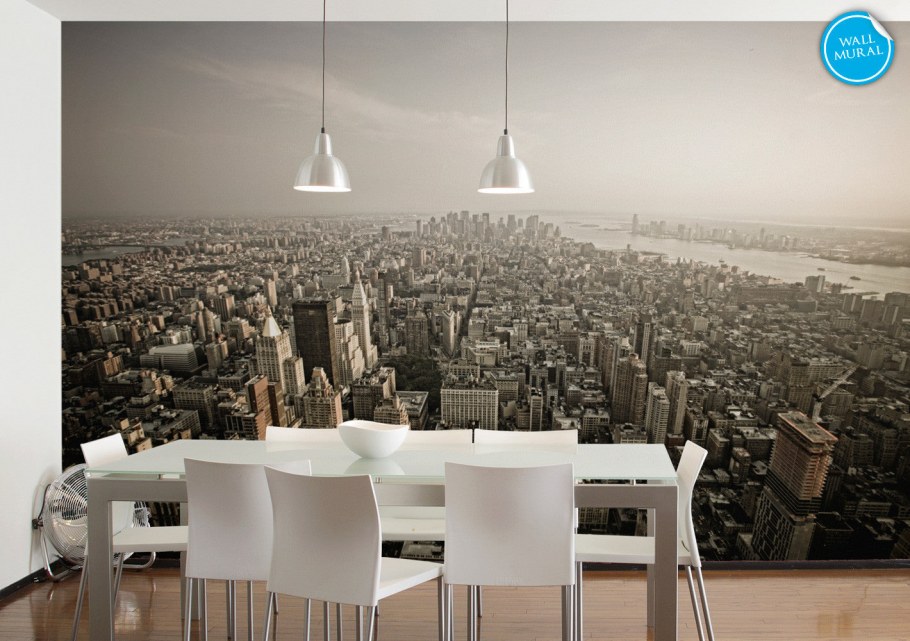 Фотообои город в интерьере кухни