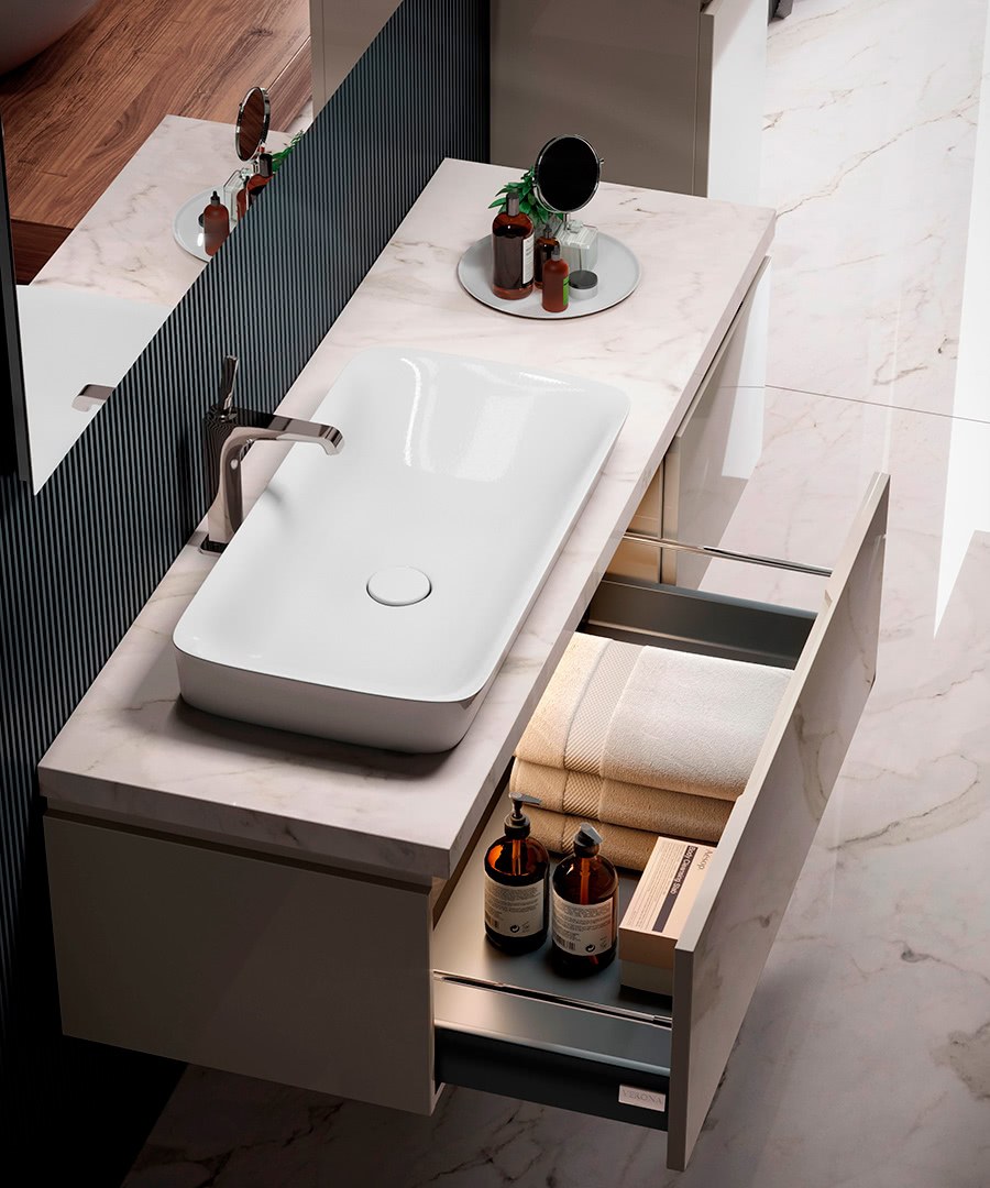Тумба под накладную раковину s&g с профилем gola 82 см 2 ящика