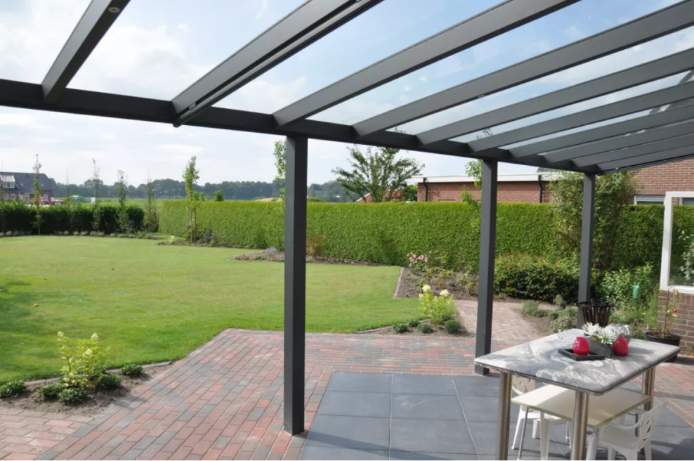 Стеклянный навес над террасой