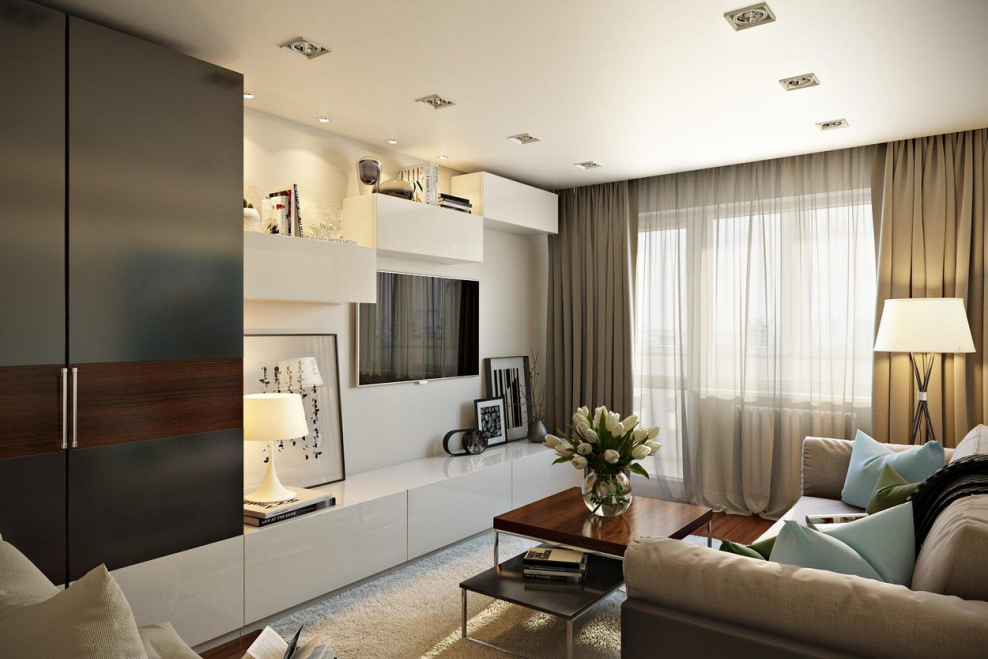 Интерьер маленькой гостинной комнаты 15 кв.м