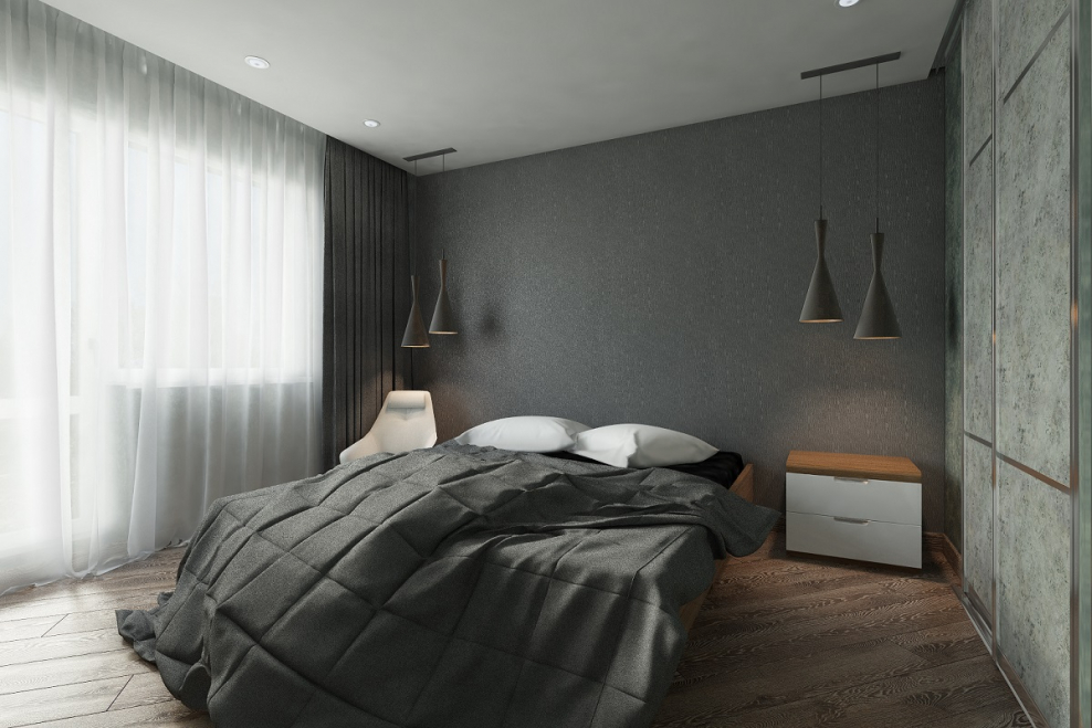 Серый цвет в интерьере спальни
