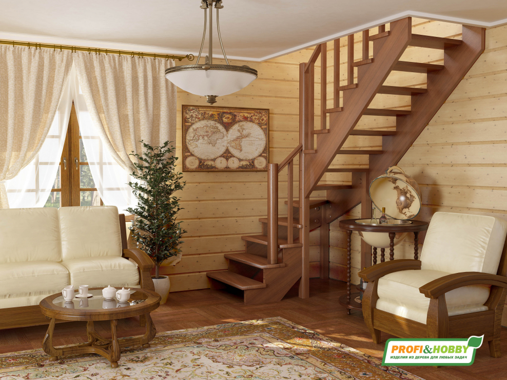 Деревянная межэтажная лестница лес-08 (поворот 90°)