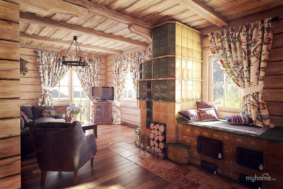 Интерьер деревенского дома внутри с печкой (77 фото)