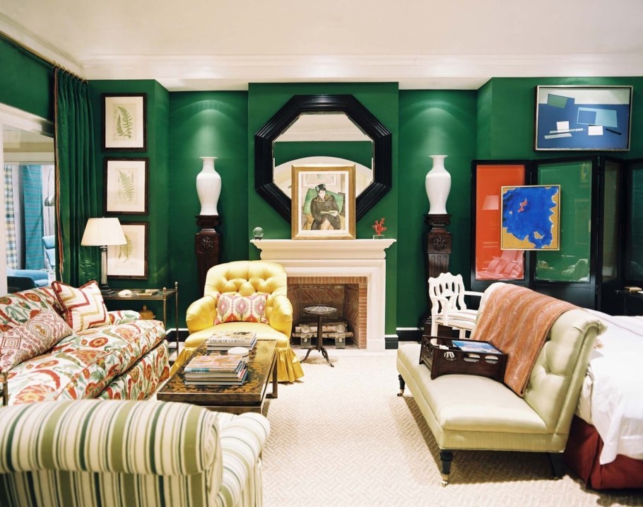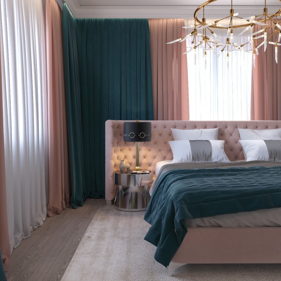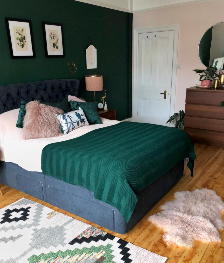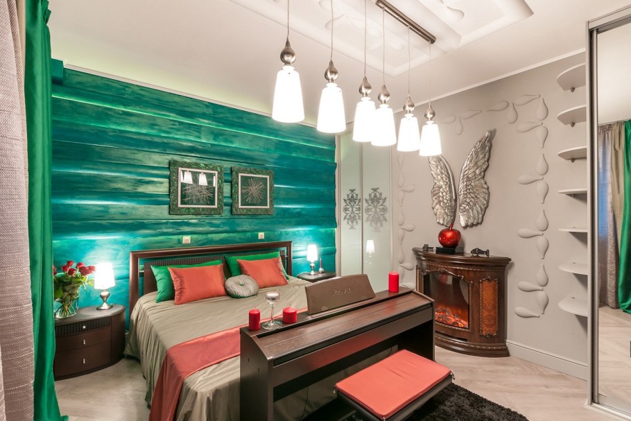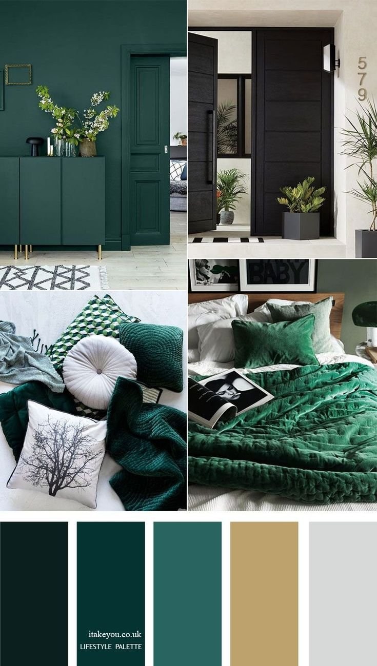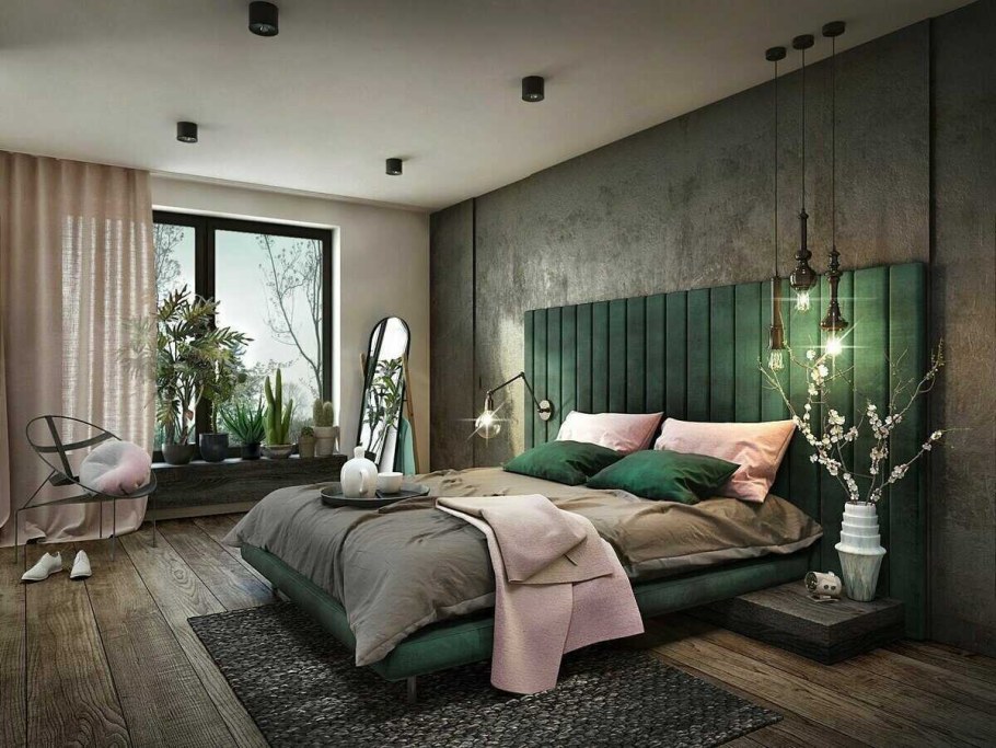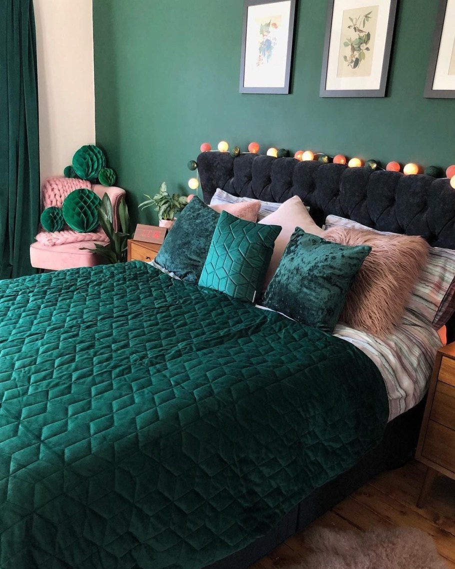 Изумрудный цвет в интерьере спальни с чем сочетается (60 фото)