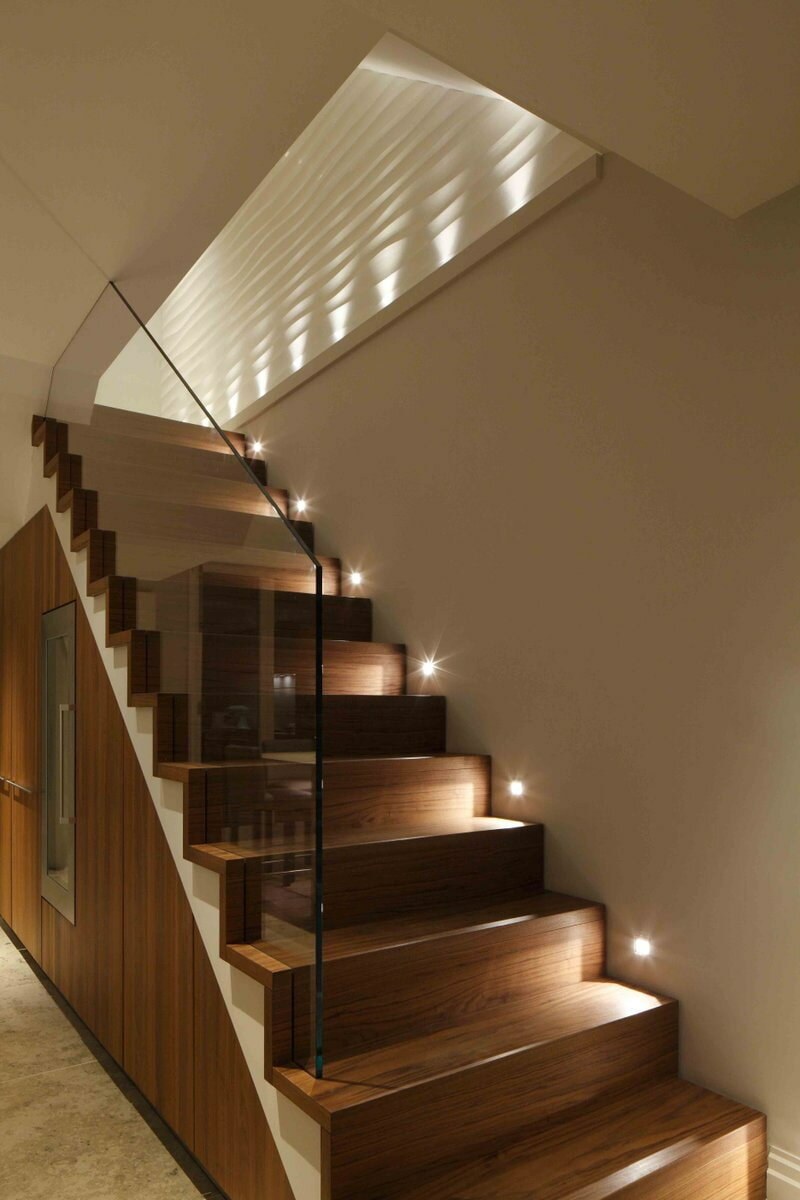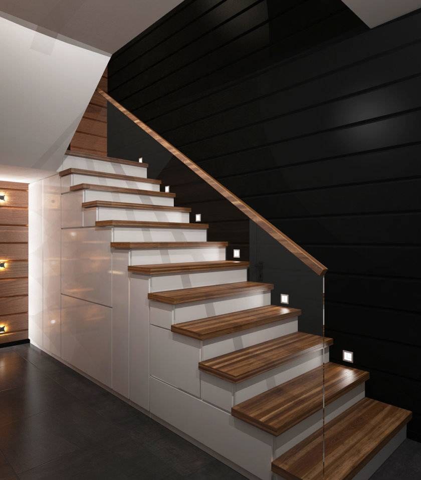 Подсветка ступеней лестницы для дома (55 фото)