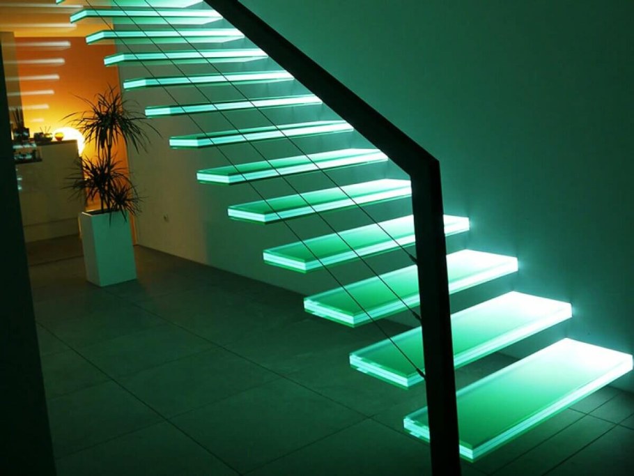 Стеклянная лестница с подсветкой