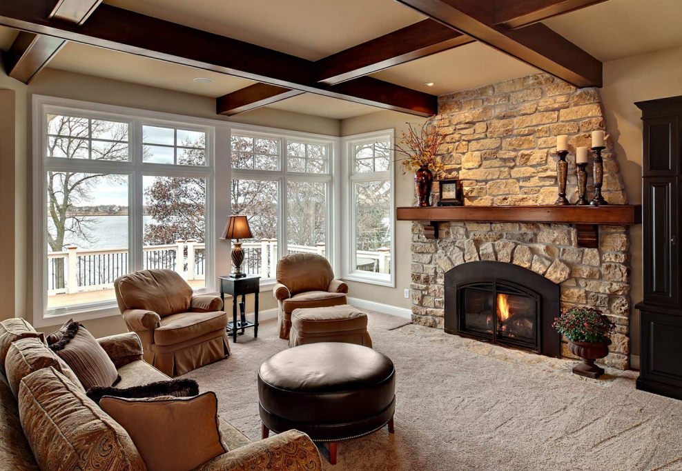Интерьер каминного зала в загородном доме