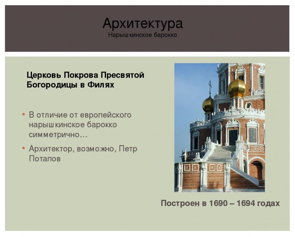 Архитектура 17 века в России таблица