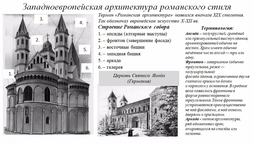 Романский и Готический стиль в архитектуре средневековья таблица