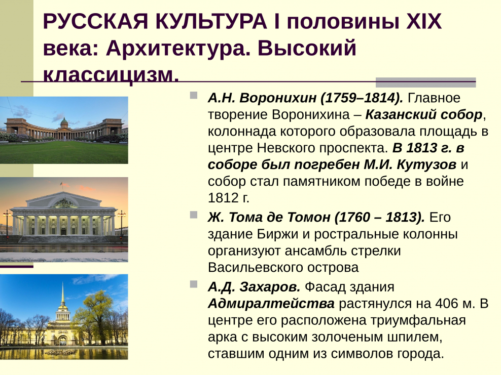 Архитектура первой половины 19 века в России классицизм