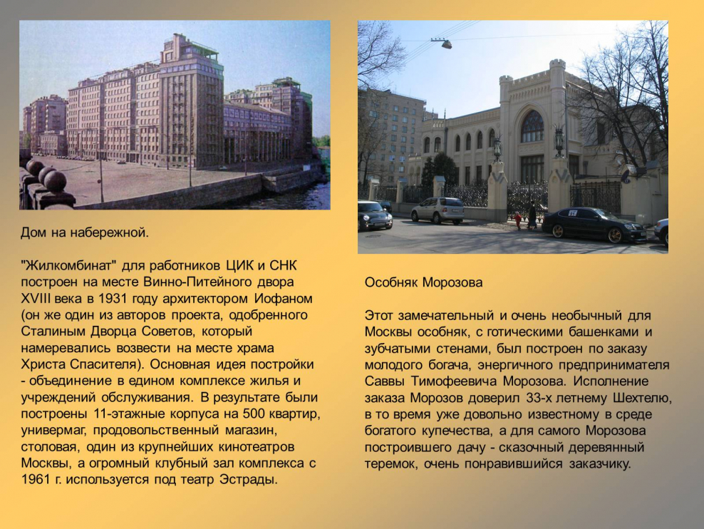 Архитектурные сооружения Москвы 20 века сообщение
