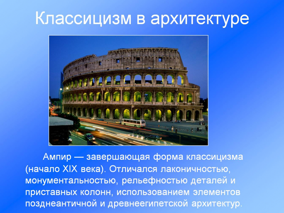 Характеристика классицизма в архитектуре