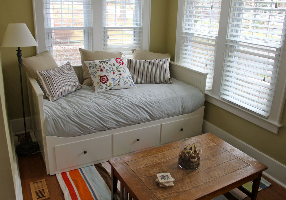 Кушетка ХЕМНЭС икеа в интерьере спальни