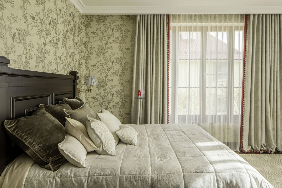 Римские шторы в интерьере спальни в стиле Неоклассика