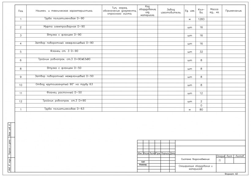 Ведомость материалов на строительном чертеже