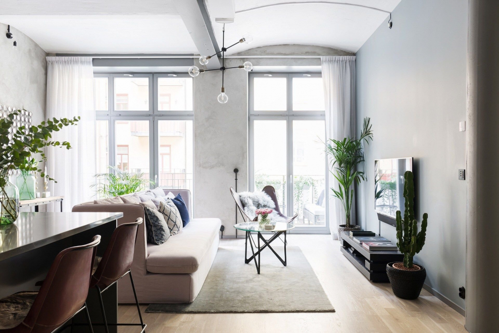 Дизайн гостиной в скандинавском стиле с 3д панелями