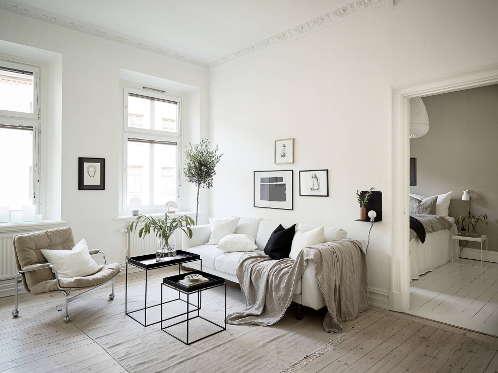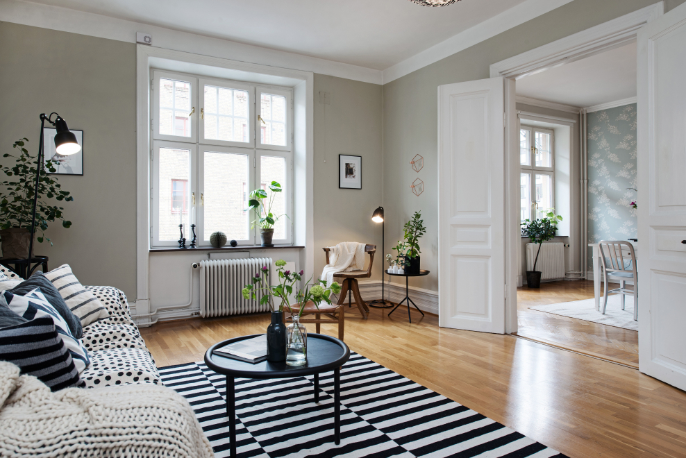 Как оформить стену над диваном в гостиной фото Скандинавский стиль