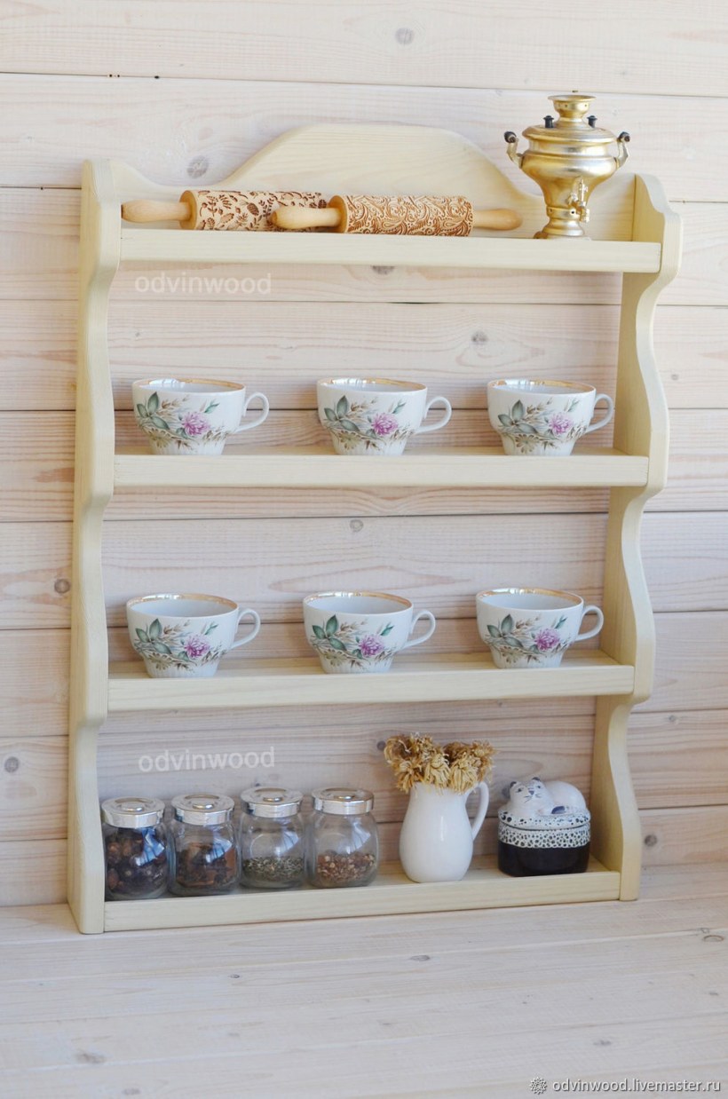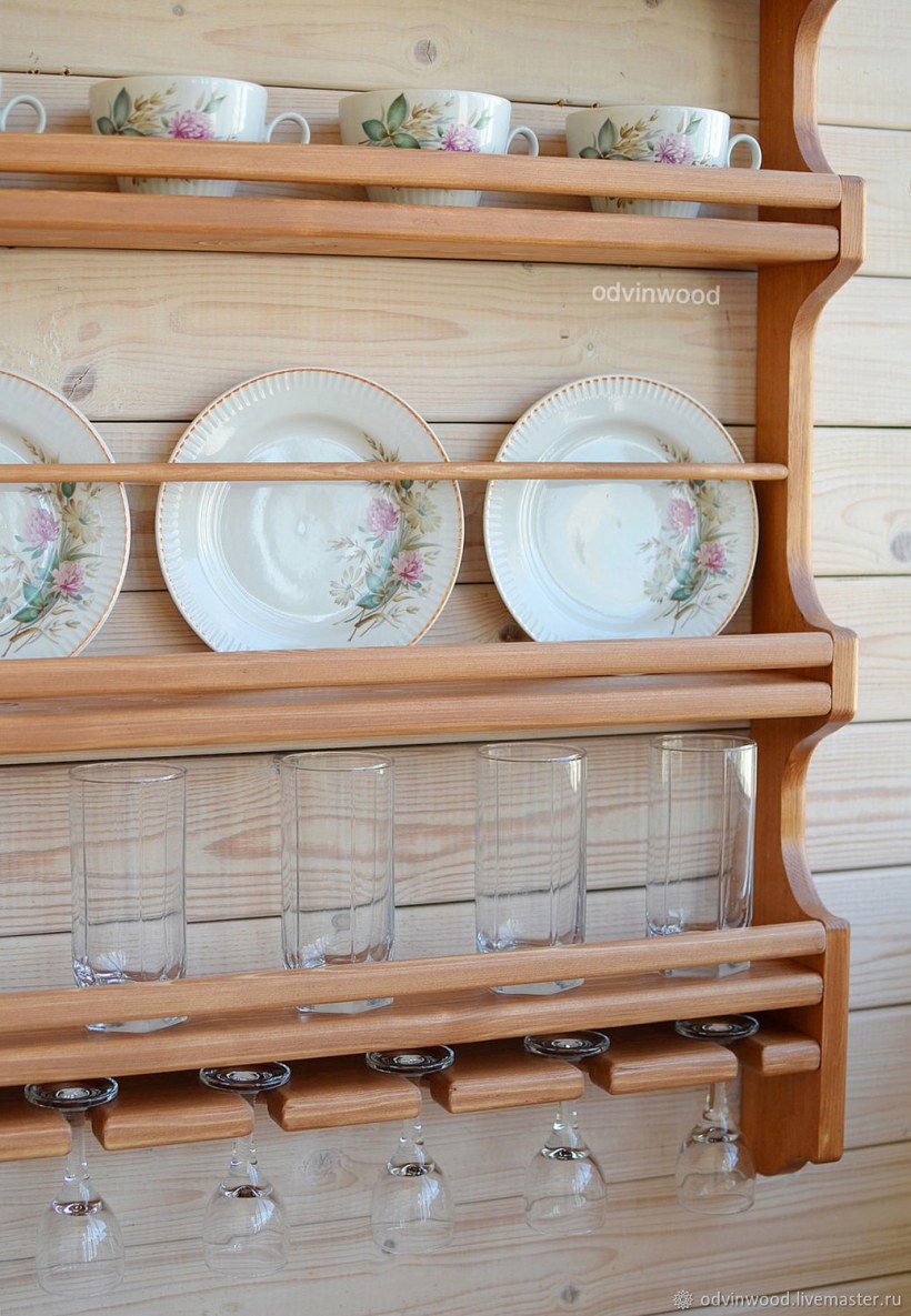 Деревянные полки для посуды