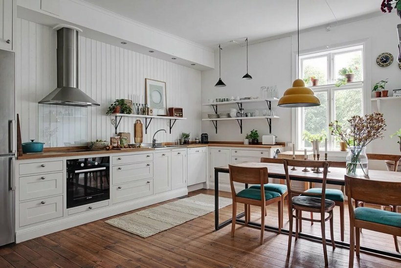 Кухня в скандинавском стиле в доме (64 фото)