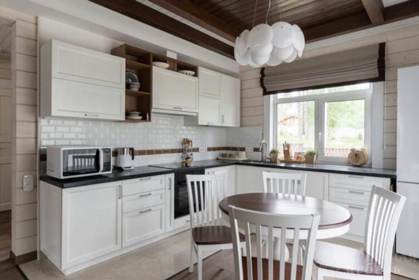 Сканди кухня белая с деревянной столешницей