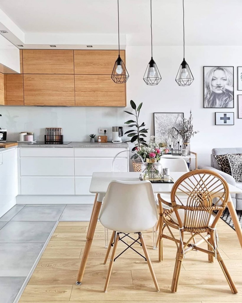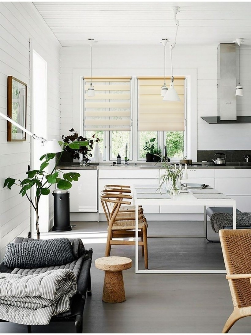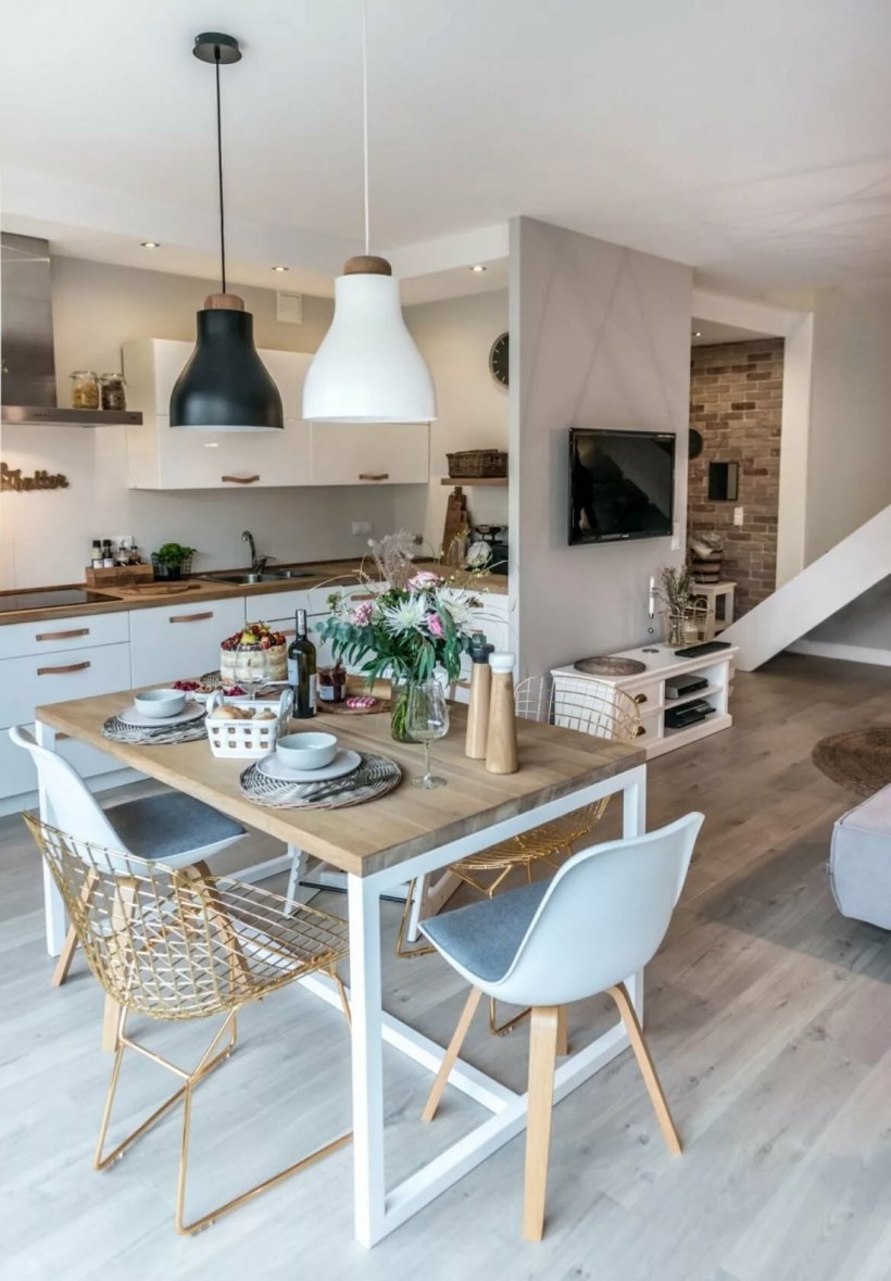 Сканди интерьер кухни гостиной