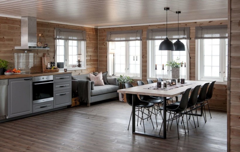 Кухня в скандинавском стиле в деревянном доме