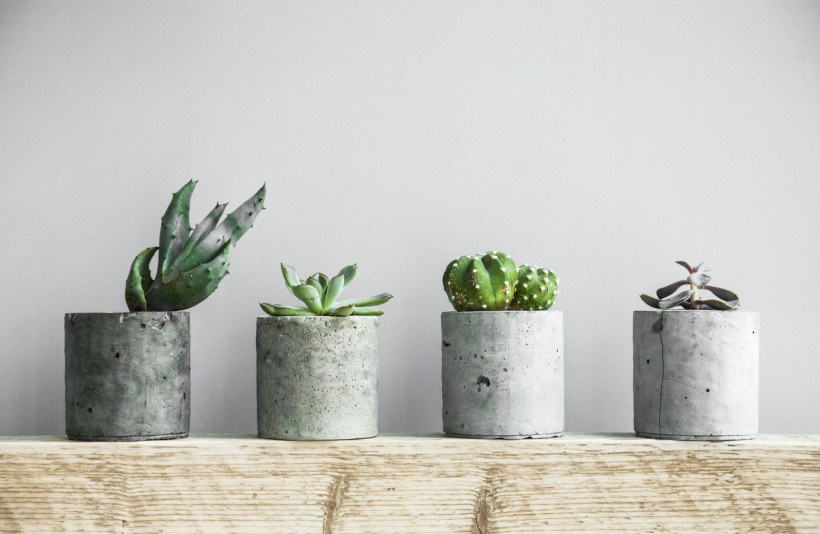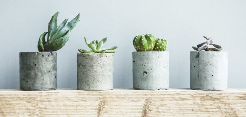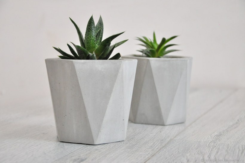 Кактусы в бетонных горшочках