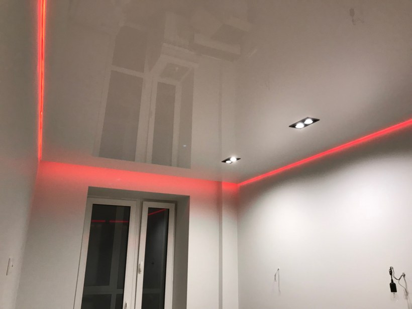 Натяжной потолок с теневым профилем в интерьере (53 фото)