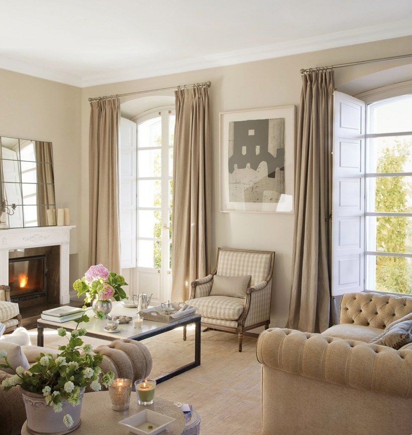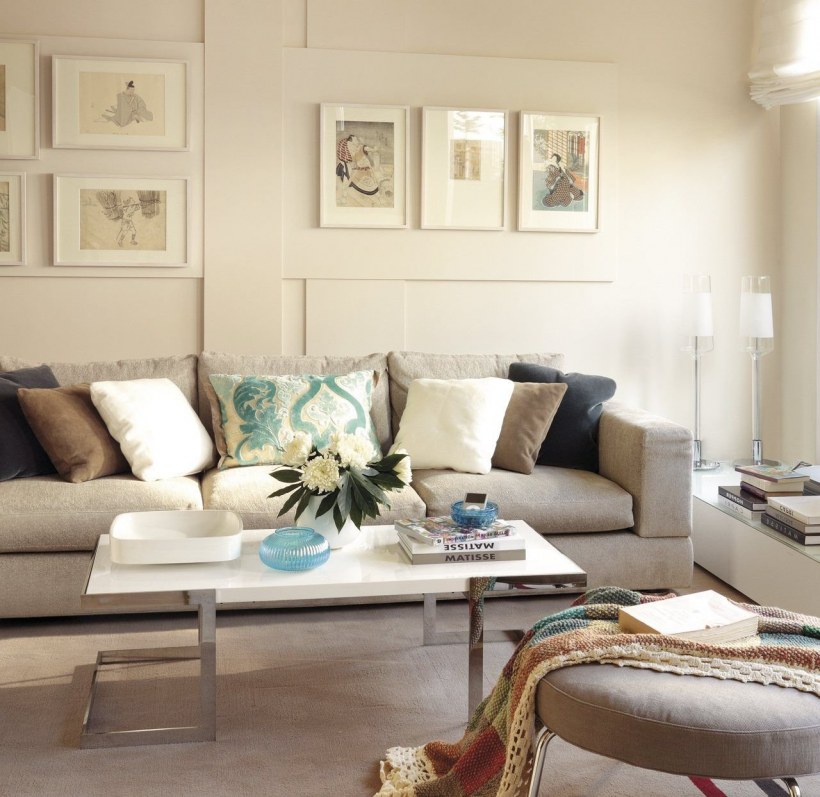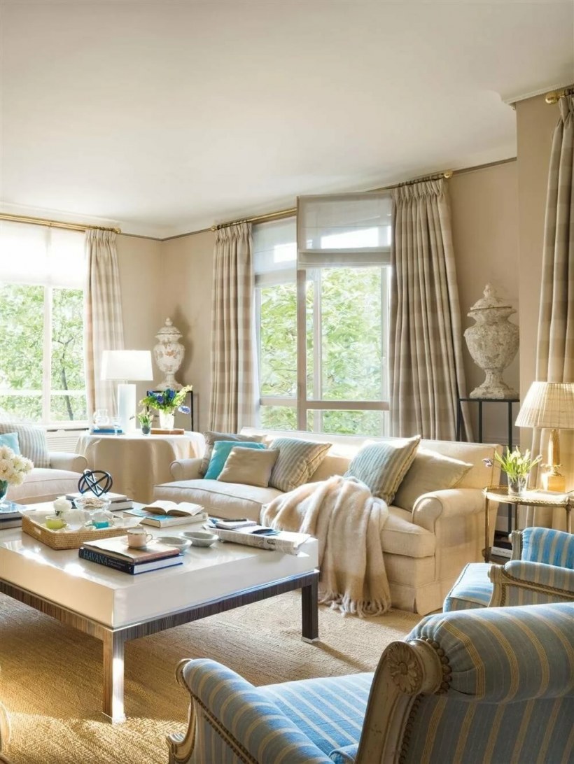С чем сочетается бежевый в интерьере гостиной (61 фото)