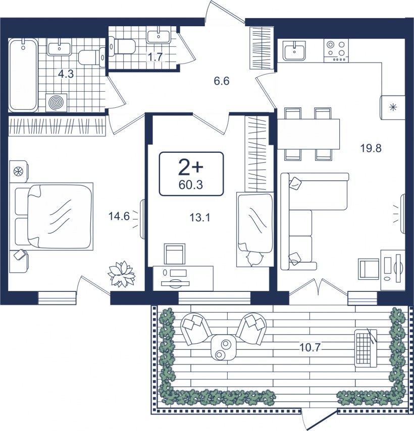 Тюмень Андерсен парк планировка квартир 2+ с лаунж балконом