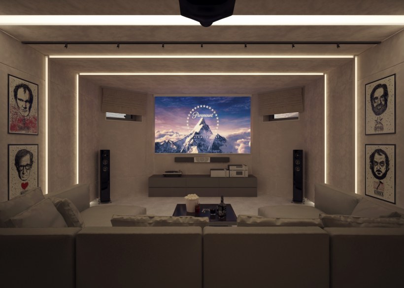 Проекторы домашнего кинотеатра в интерьере квартиры