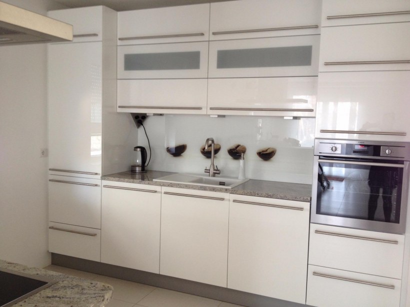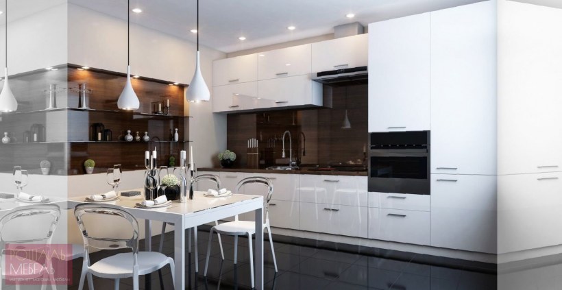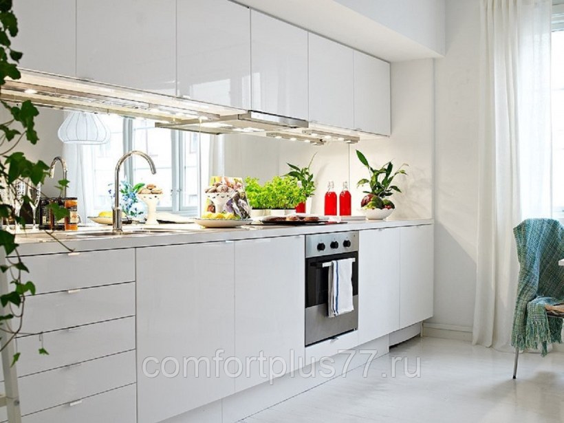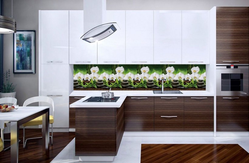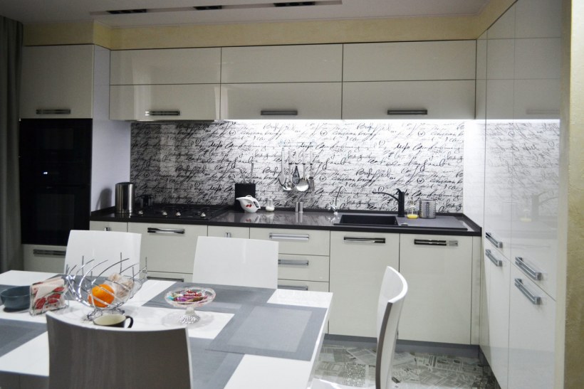 Фартук на белую глянцевую кухню