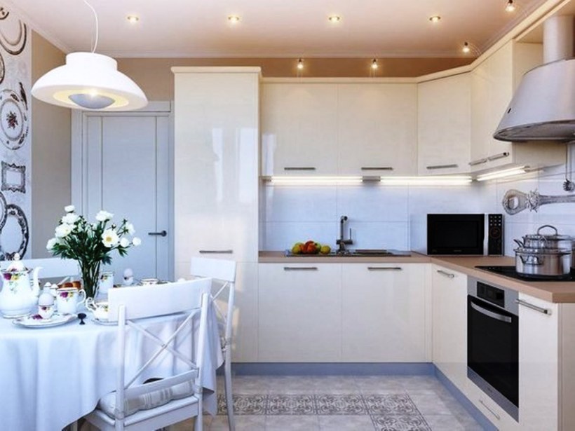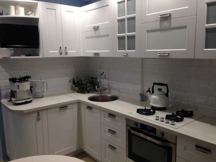 Белые кухонные гарнитуры для маленькой кухни