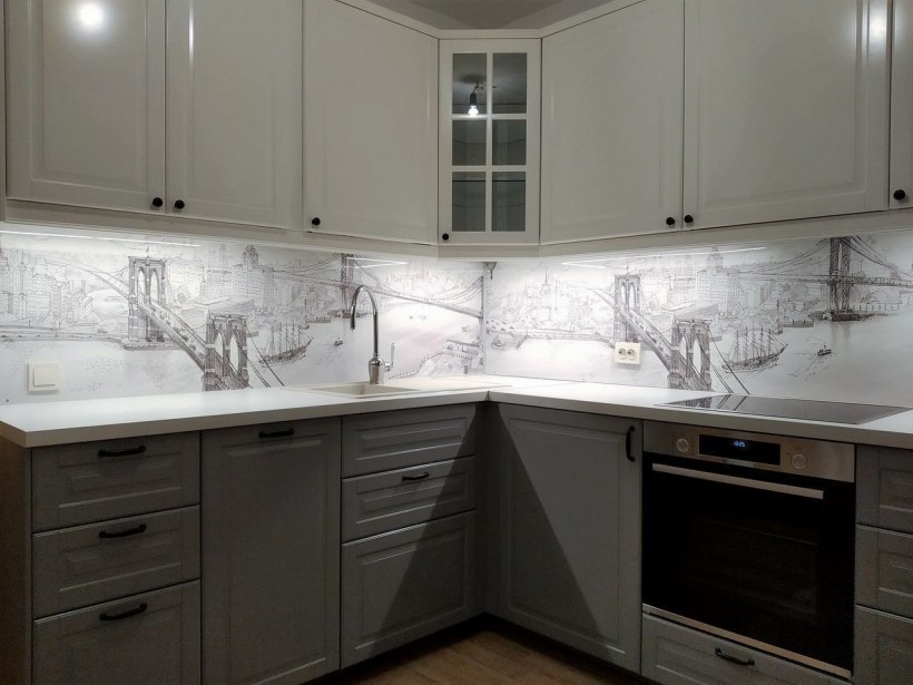 Фартук для белой глянцевой кухни