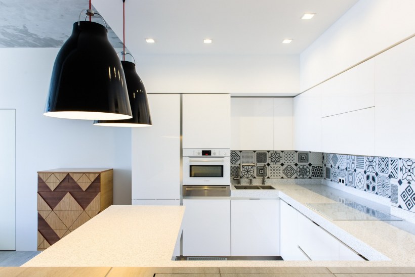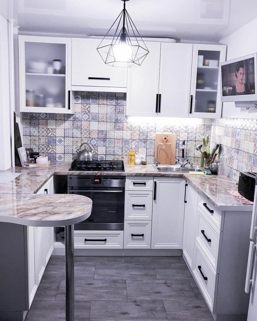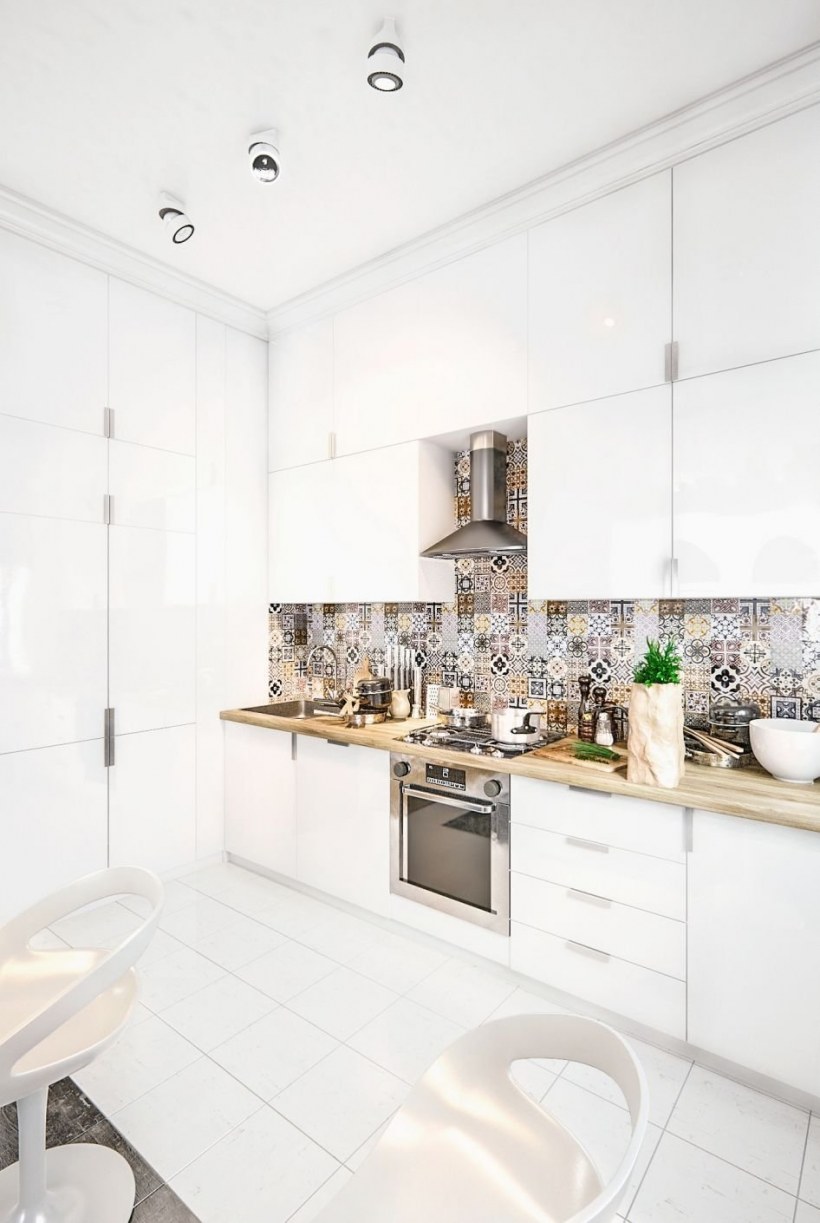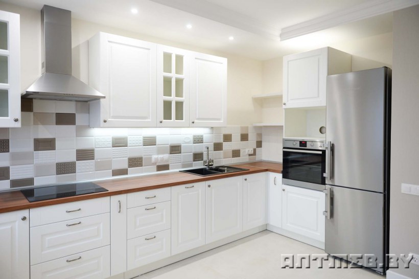Фартук для белой кухни из плитки
