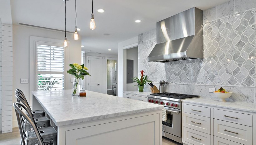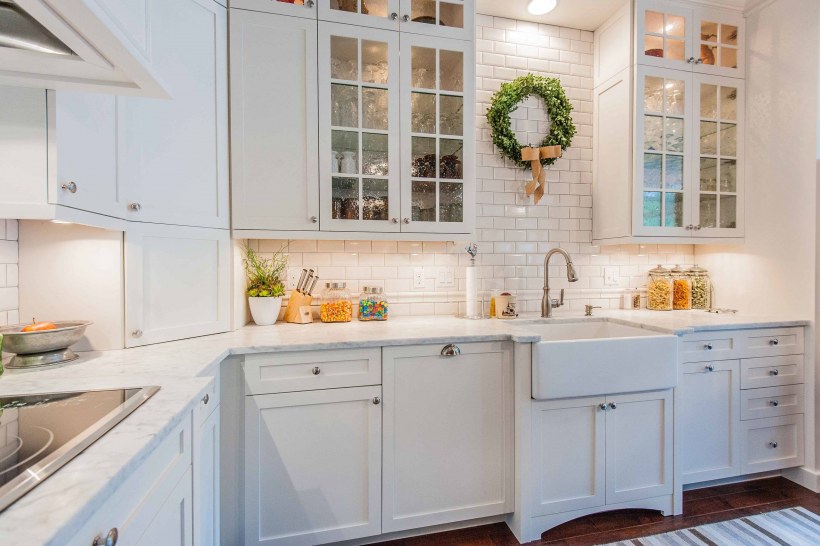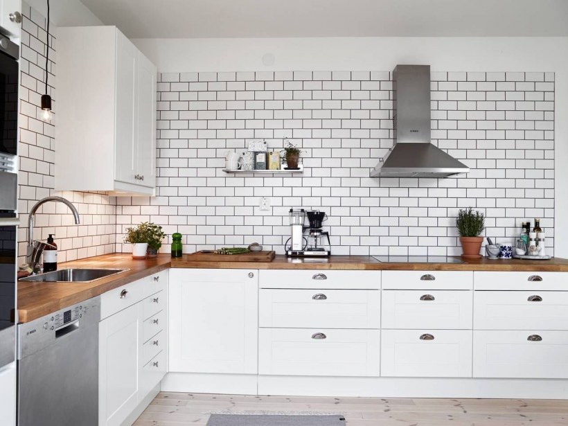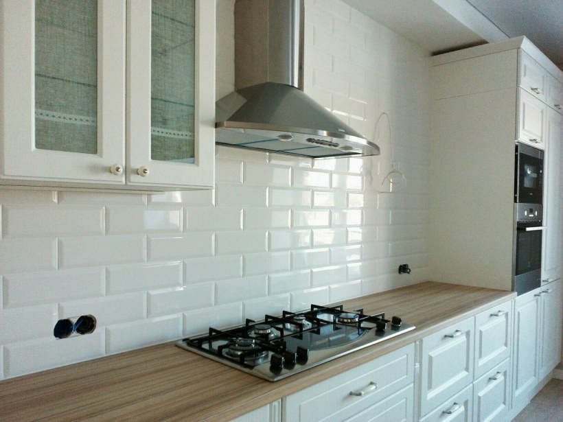 Белая плитка на кухне